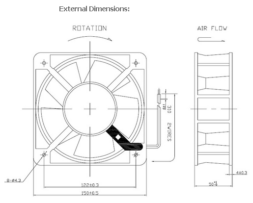| विशिष्टता: एसी अक्षीय फैन 150mm * 150 * 50mm | ||||||||||
